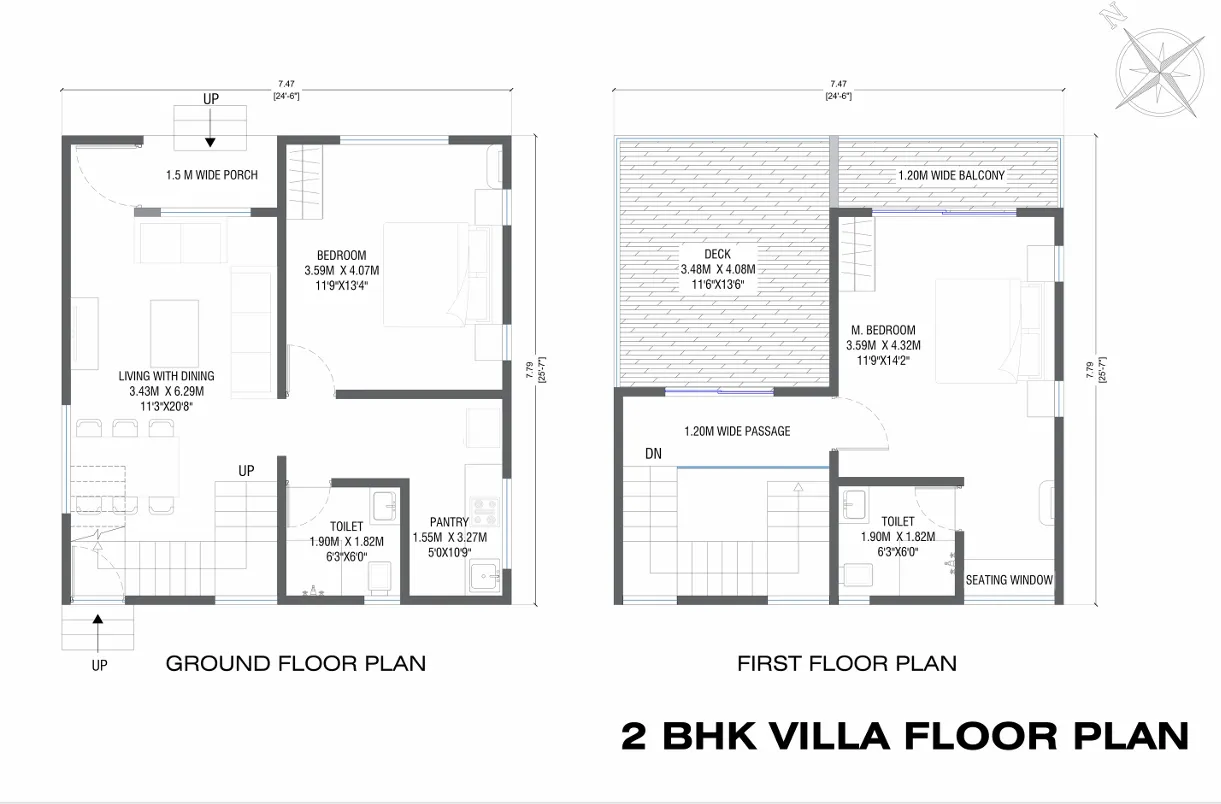 Our G+1 villas sit on a 1250 sq.ft. Built Up Area with 1,000 Sq. Ft. offering premium interiors and spacious balconies. Enjoy soothing backwater views from the large deck, crafted for comfort and elegance. Built with an RCC framed structure, each villa comes with a modular kitchen, solar lighting, and dedicated parking.